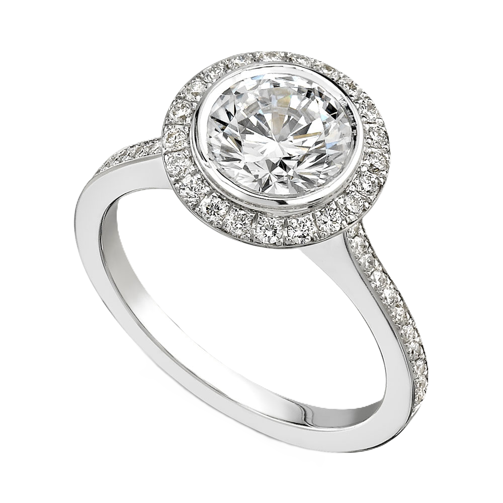 We offer engagement rings including traditional solitaire engagement rings, rings with sidestones, three stone rings, tension set rings and designer rings.